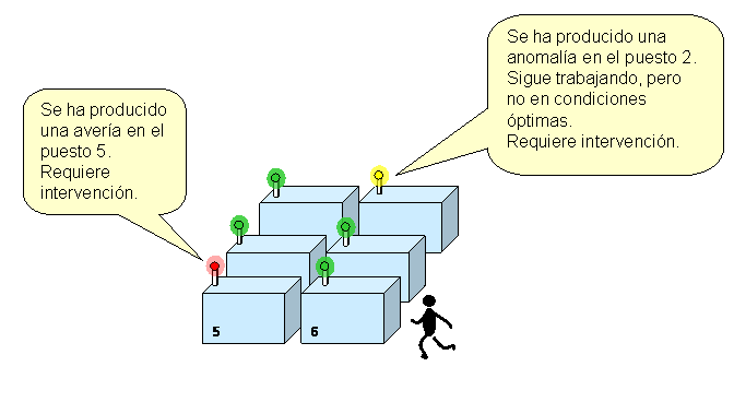 Warning: Este otro tipo de Poka-Yoke alerta sobre alguna anomalía que sea detectada. El Poka-Yoke de advertencia más conocido o famoso es el Toyota andon que se activa cuando el personal (operario) tira de un cable que se encuentra lo largo de la línea.